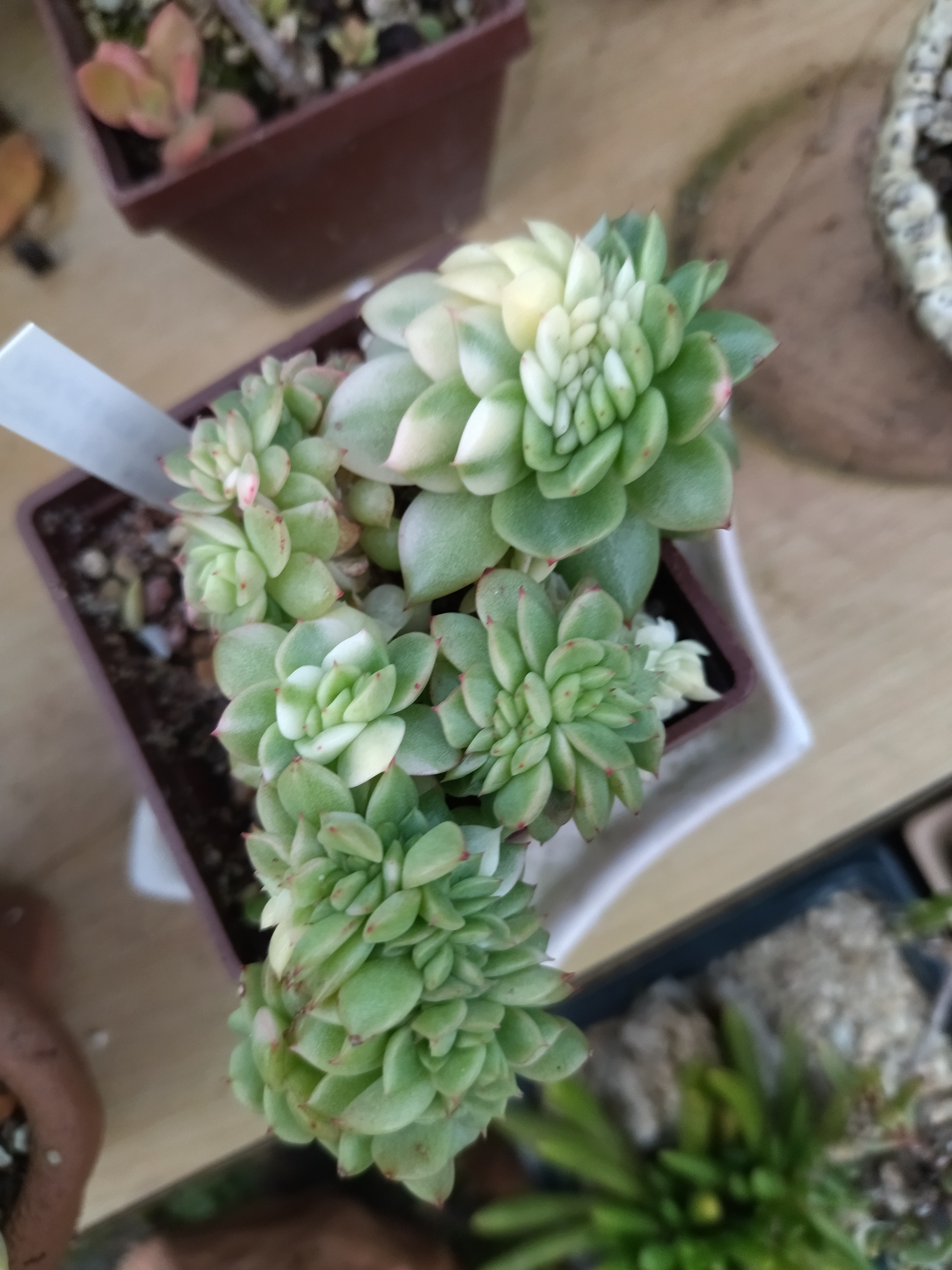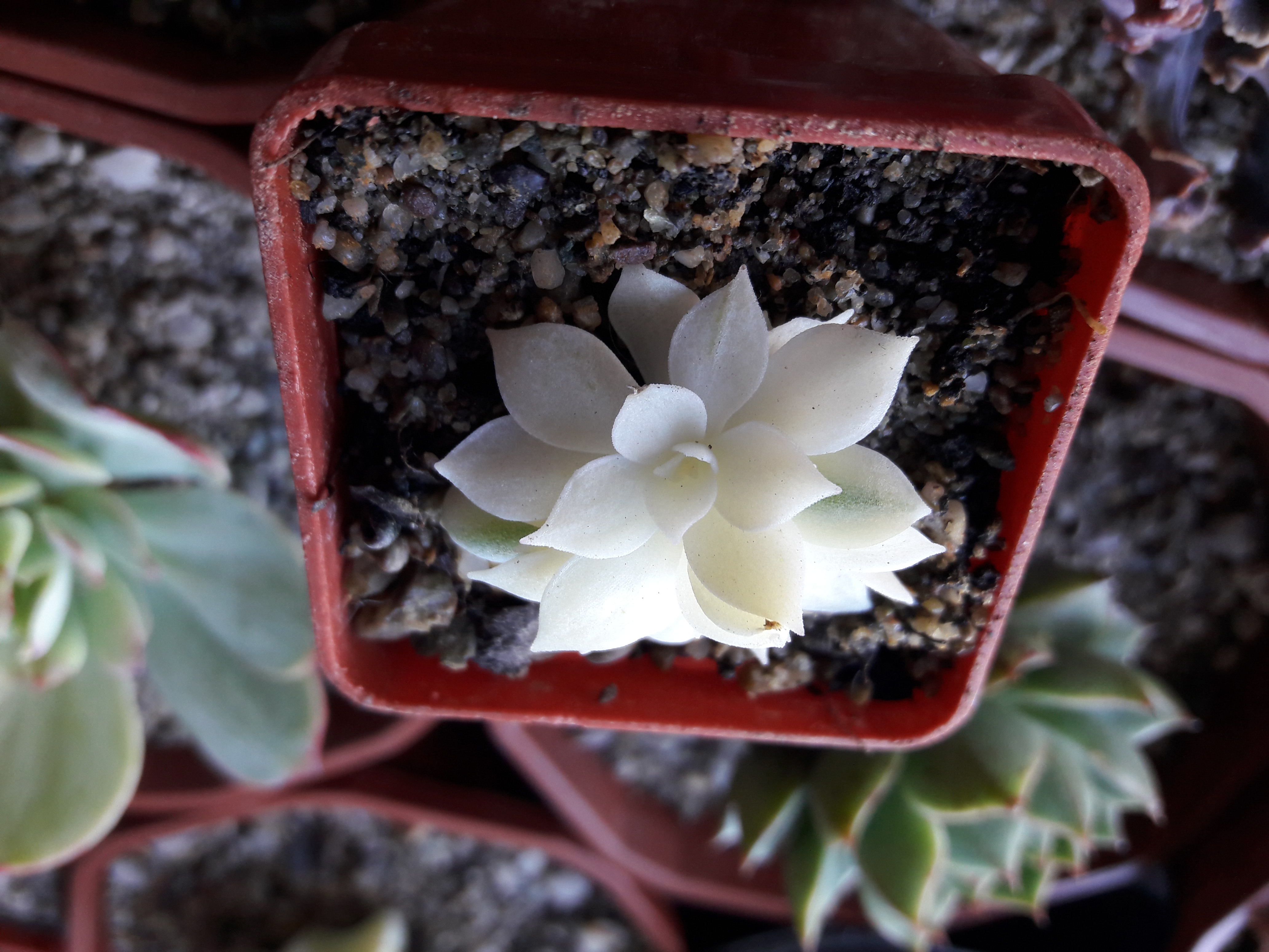 @bogo Lístok som oddelil cca koncom apríla, asi po dva a pol týždni začal pučať a postupne vytvoril korienky a rastlinku. Pôvodný lístok z materskej rastlinky uschol niekedy začiatkom augusta. Trsík sa zatiaľ drží a pomaly prirastá - sú to tri biele rastlinky so spoločným koreňovým systémom. Len dva lístky z celého trsu majú viditeľný chlorofyl, aj to len v nepatrnom množstve. Sám som zvedavý, či to takto vydrží, resp. že či sa jej napokon podarí vytvoriť aj zopár zelenších listov, aby bolo z čoho žiť. Zatiaľ je však tu, svojim nezvyčajným výzorom skrášľuje zbierku a fotky ju pravdupovediac zvečnia 😊